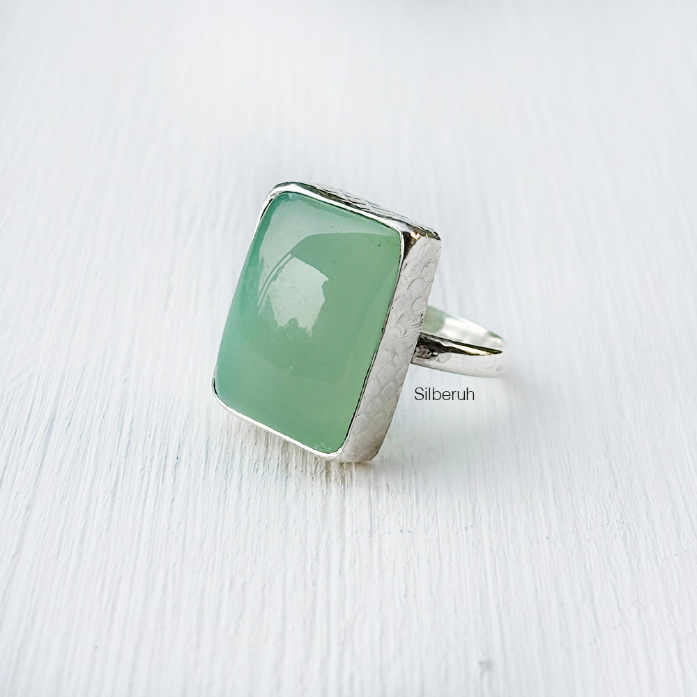 Aqua Chalcedony 925 Silver Ring – Calming & Energy Balancing Natural Gemstone