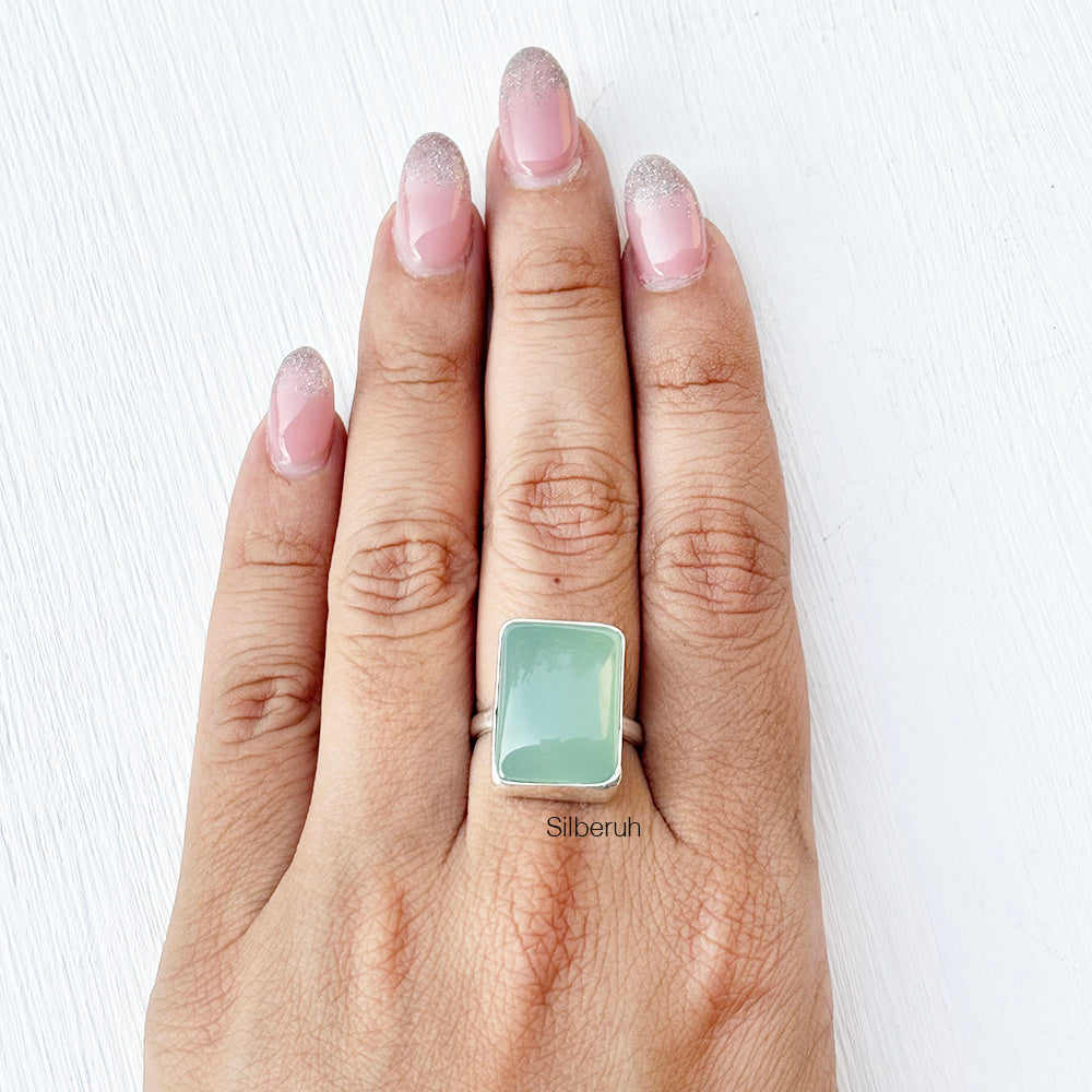 Elevate your look with this Aqua Chalcedony 925 Silver Ring, handcrafted in solid sterling silver and set with a soothing natural gemstone.