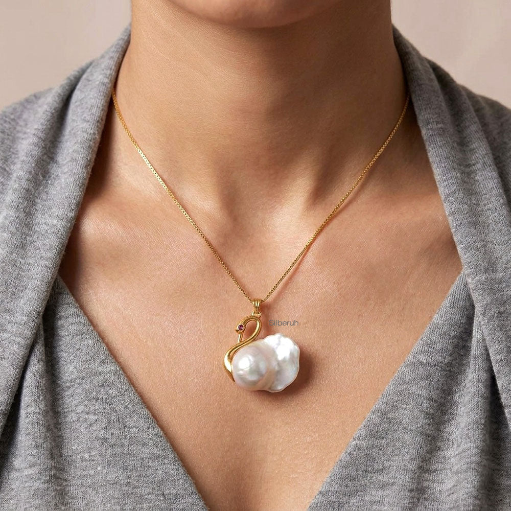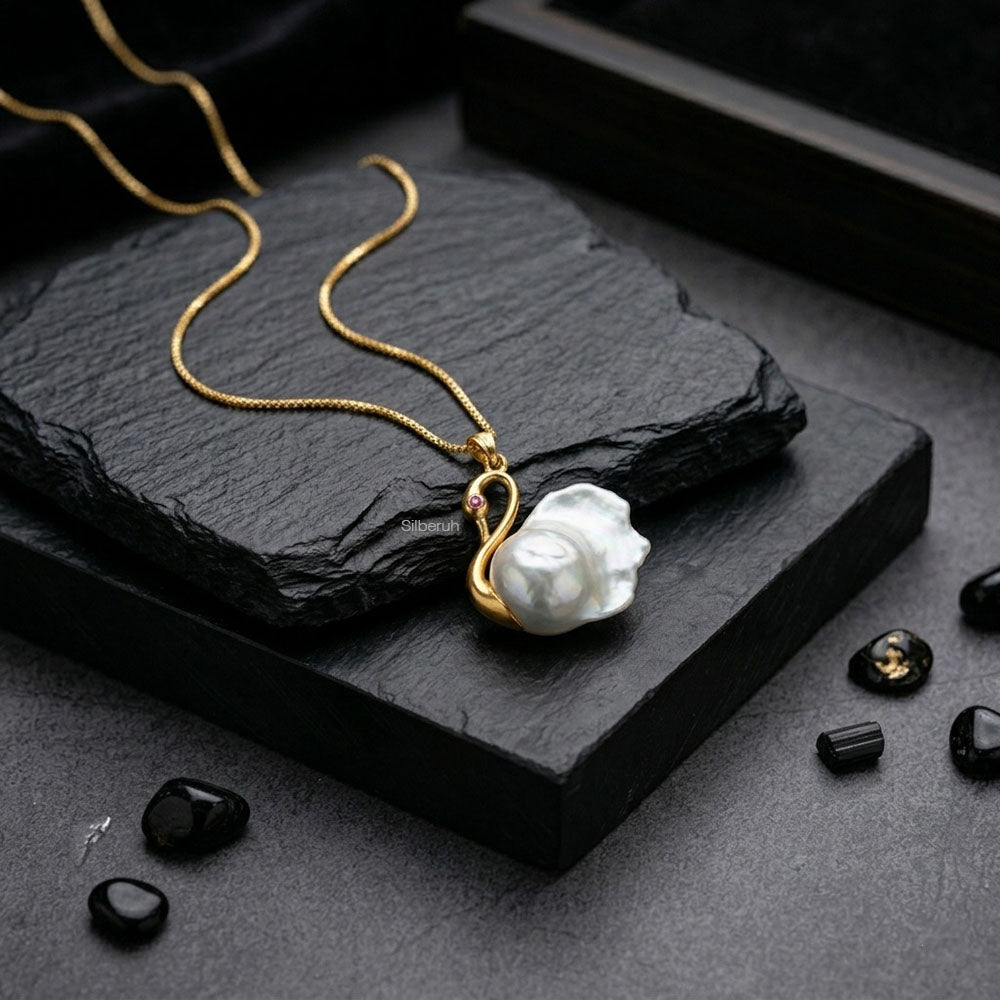 Baroque Pearl Swan Necklace in 925 Silver Gold Plated