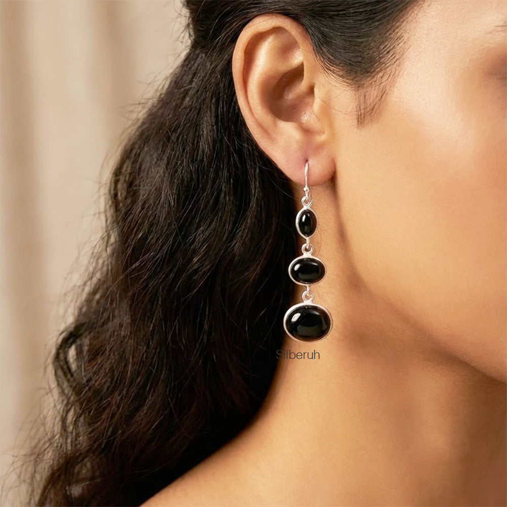 Black Onyx Silver Earring