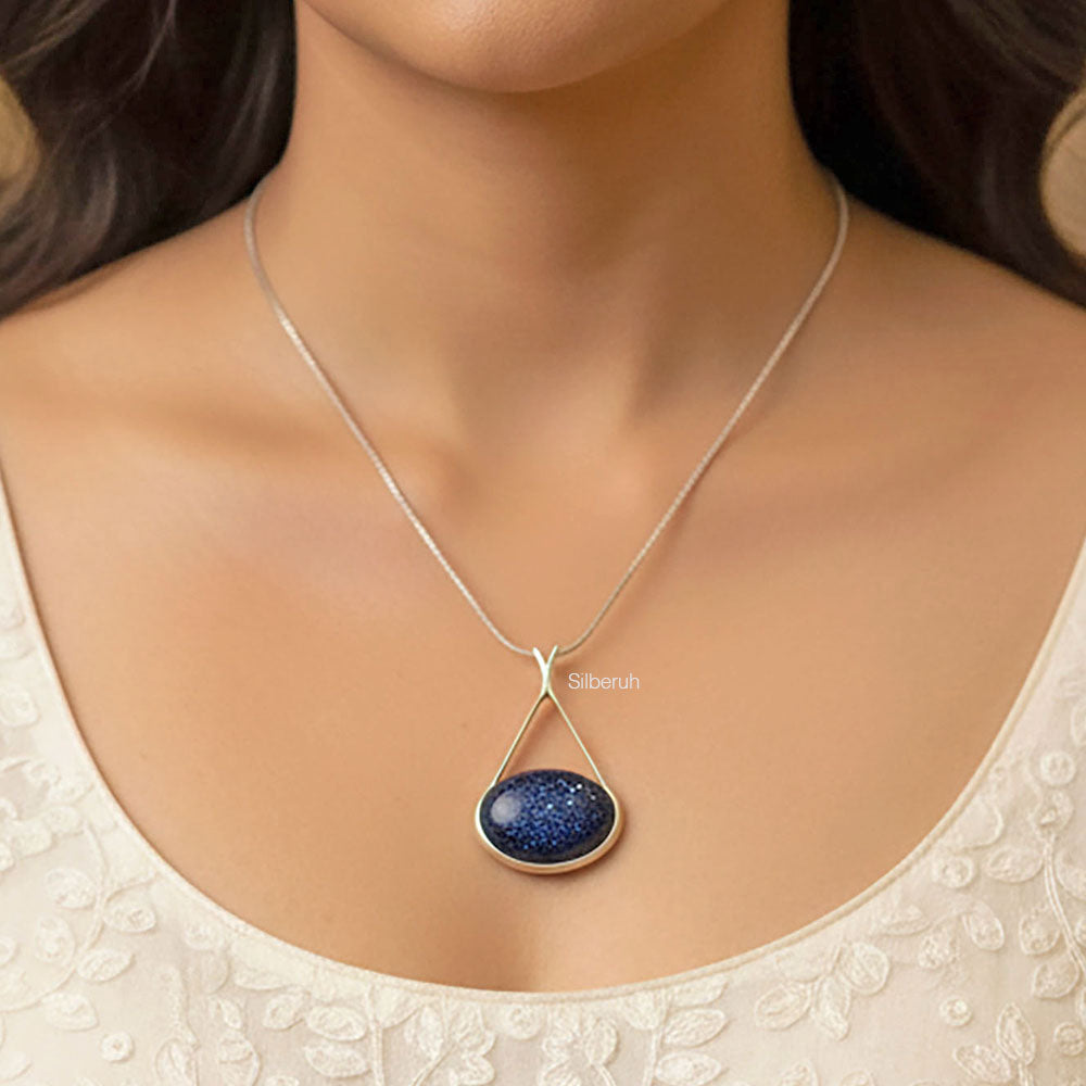 925 Silver Blue Sunstone Pendant for Women – 92.5 Sterling Silver