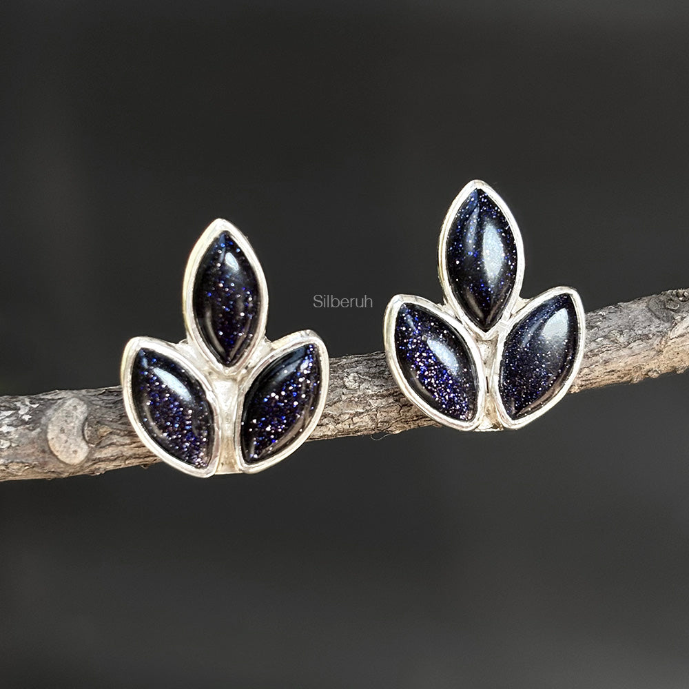 925 Silver Blue Sunstone Leaf Stud Earrings