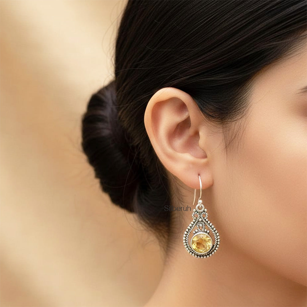 925 Silver Facetted Citrine Earrings – Handcrafted Natural Gemstone Jewellery