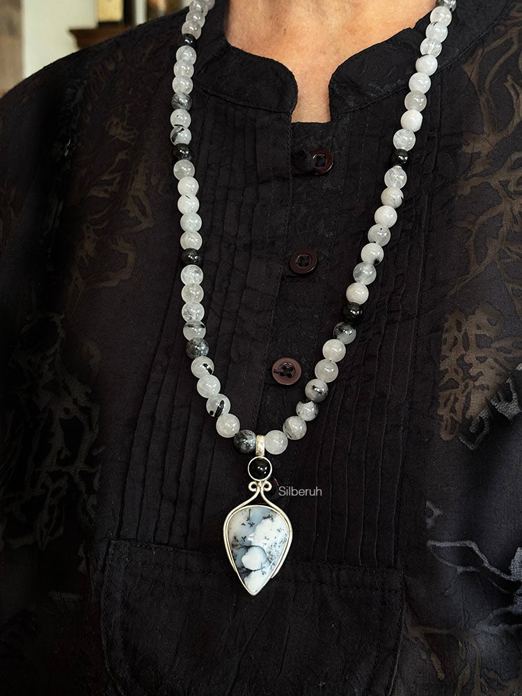 Dendrite Agate & Rutilated Quartz Silver Necklace