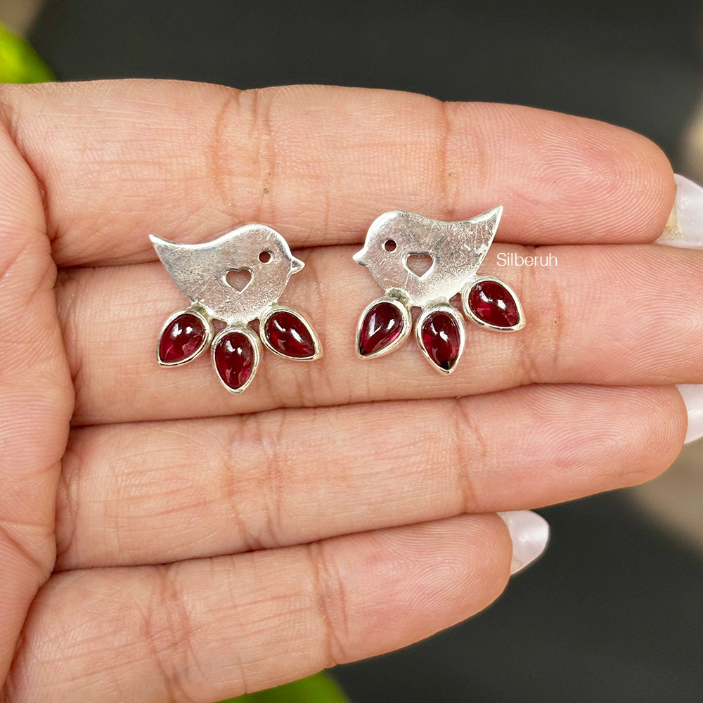 925 Silver Garnet Bird Stud Earrings – Natural Stone of Protection & Strength
