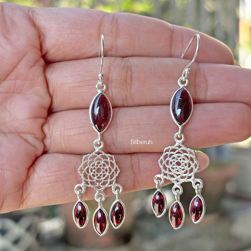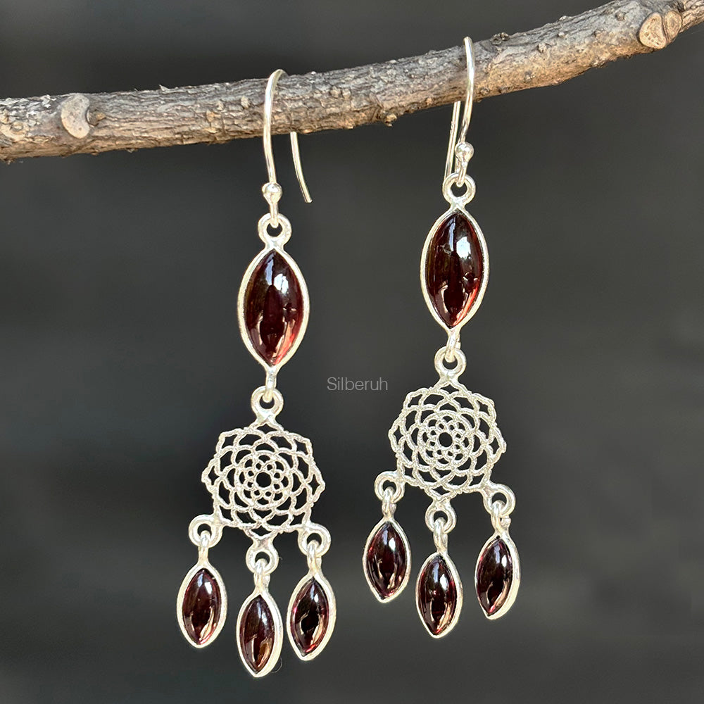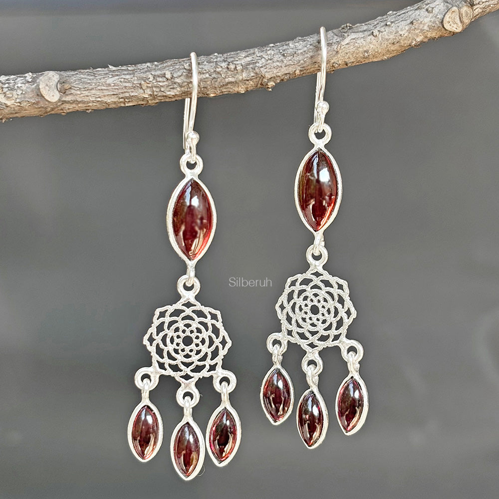 Garnet Dreamcatcher Silver Earring