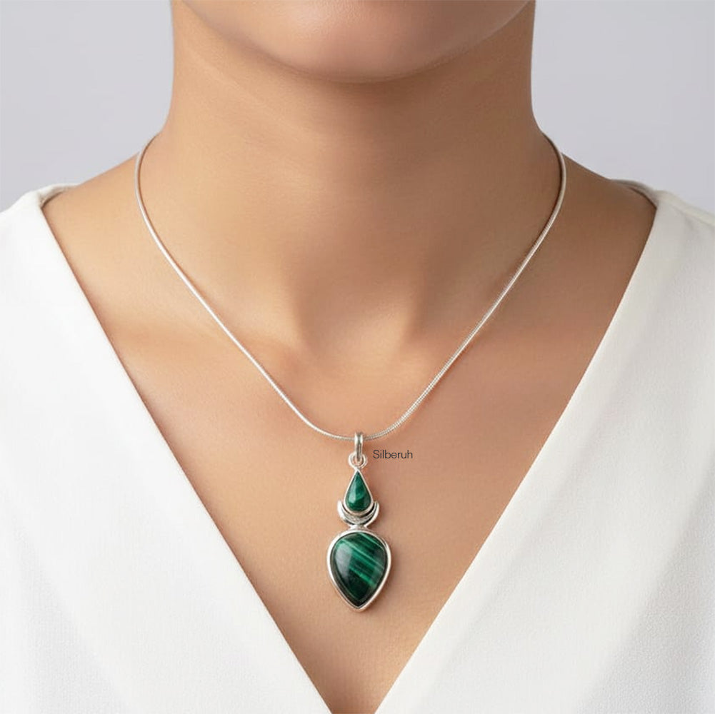 925 Silver Malachite Pendant | Natural Healing Crystal Jewellery