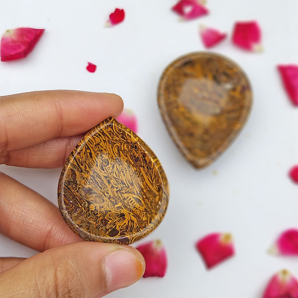 This Mariam Diya, carved from natural Mariam Stone (also known as Calligraphy Stone or Elephant Skin Jasper), is a powerful spiritual tool and unique decor piece. With its earthy tones and natural calligraphic patterns, it brings a deep sense of protection, grounding, and inner strength.