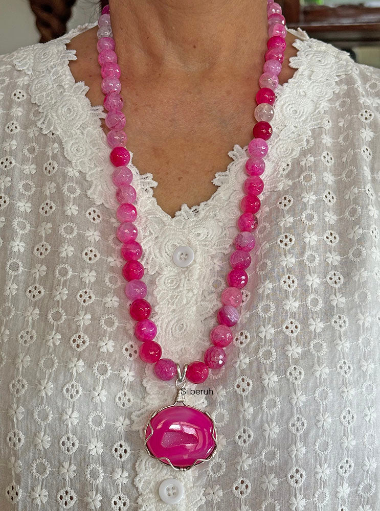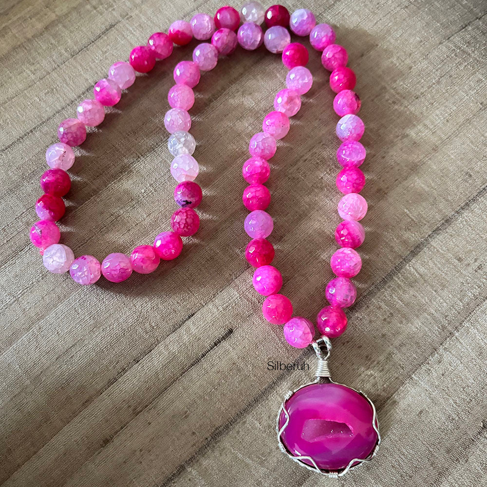 Pink Druzy 925 Sterling Silver Necklace for Women