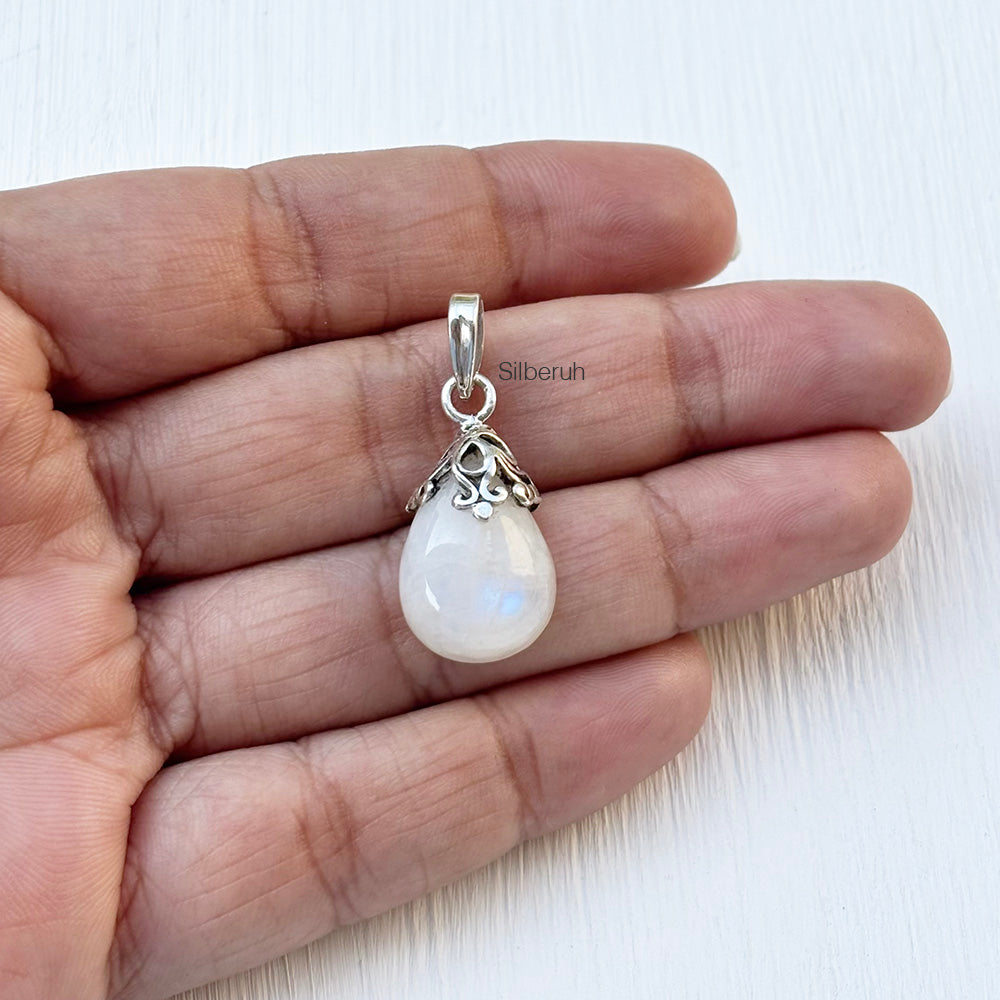 Rainbow Moonstone Filigree Drop Silver Pendant