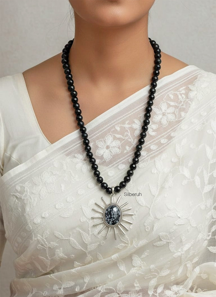 Snowflake Obsidian & Black Onyx Silver Necklace