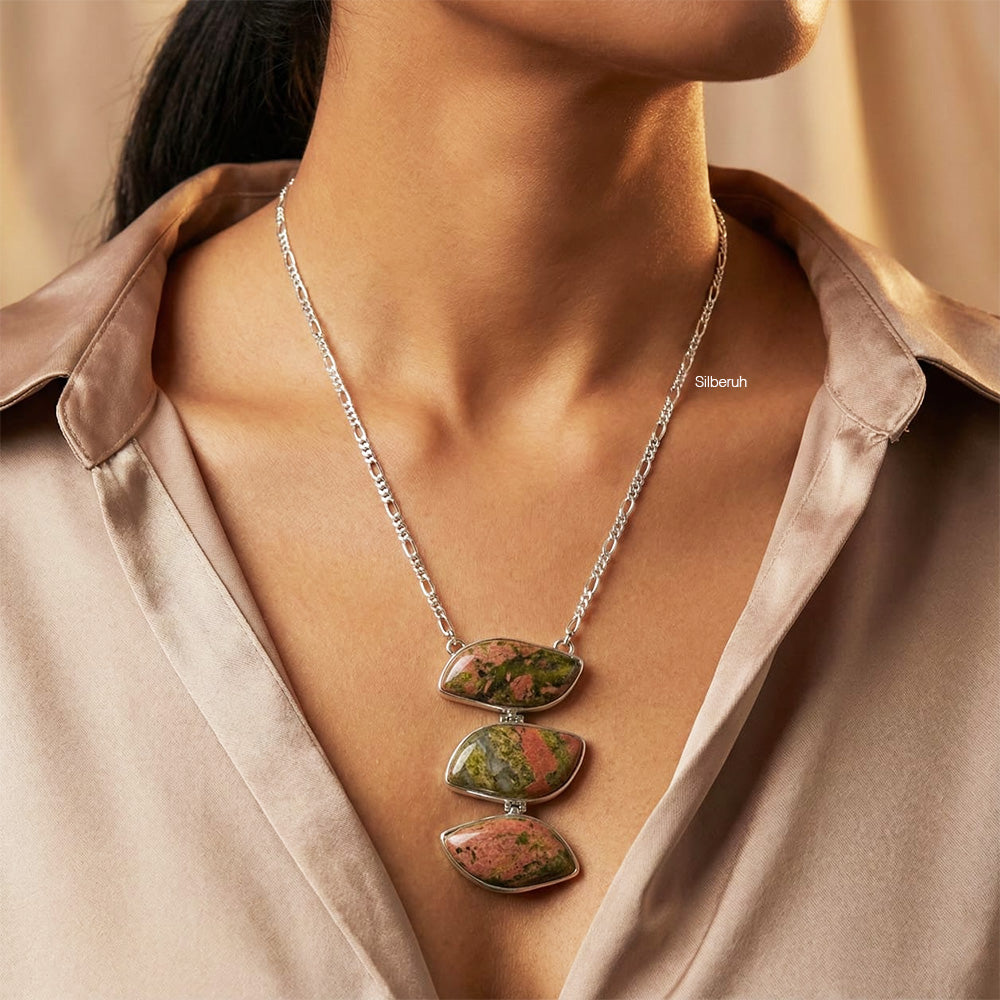 925 Silver Unakite Necklace. Also available in Blue Lace Agate